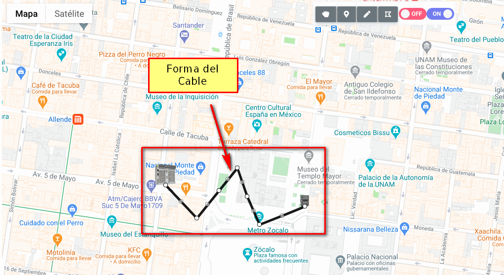 5 Se creará el cable en el mapa.