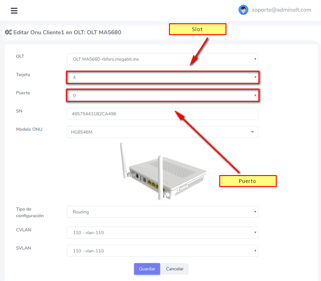 Editar Slot de ONU desde Lista de ONU's Autorizadas