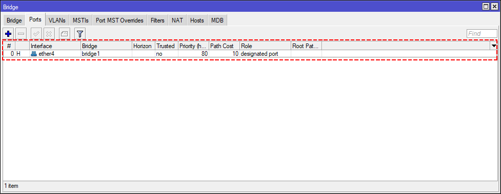 2 Asignamos al bridge1 los dos puertos que conectan a la OLT.