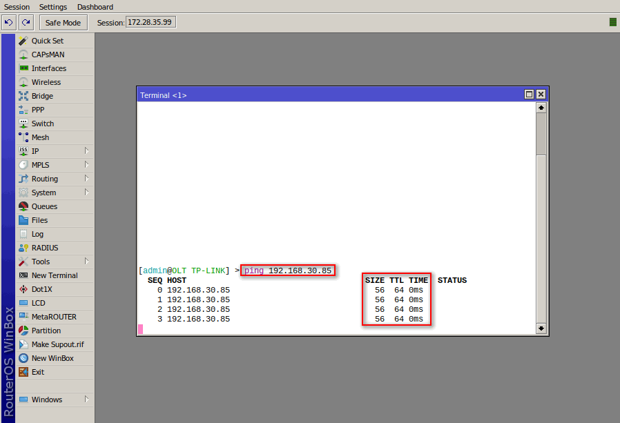 3 Debemos probar la conexión con la OLT con la ip default que se asignó