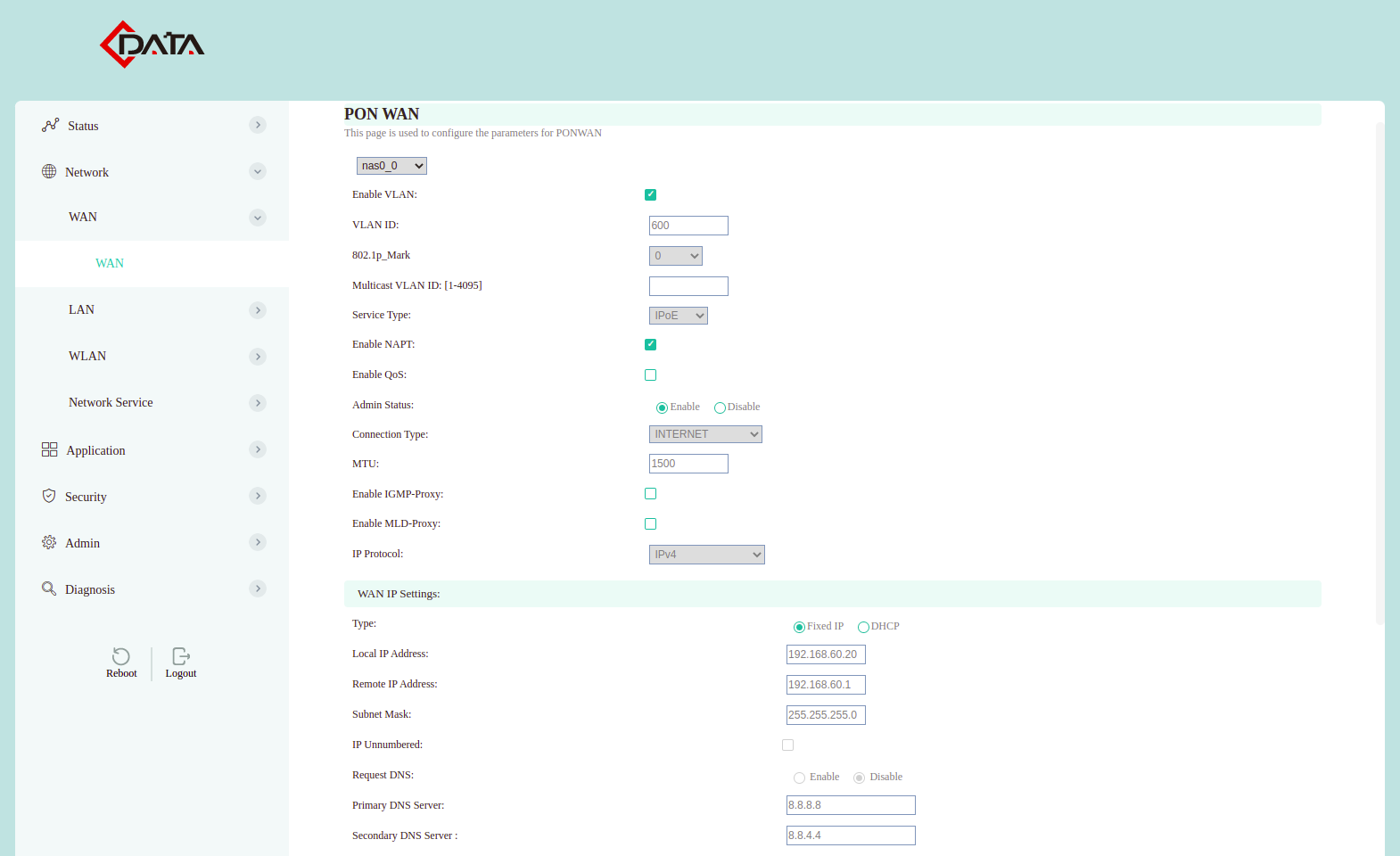 Configuración WAN IP C-Data (AdminOLT)
