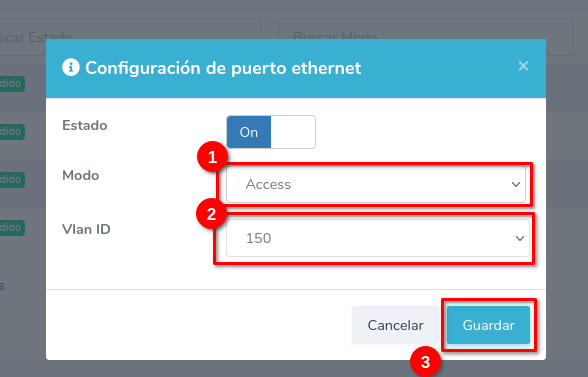 Coloque la opción modo en Access, coloque una vlan en la opcion Vlan ID y guarde el cambio