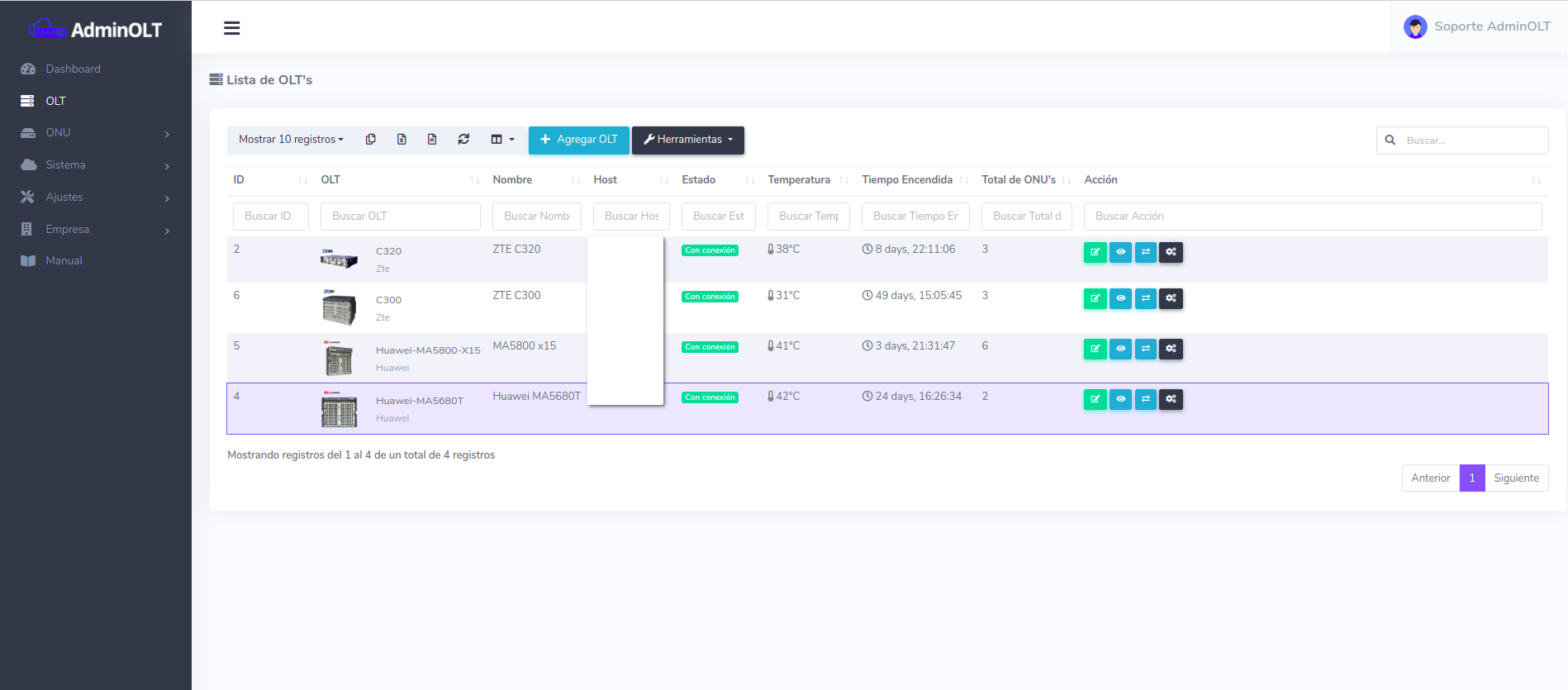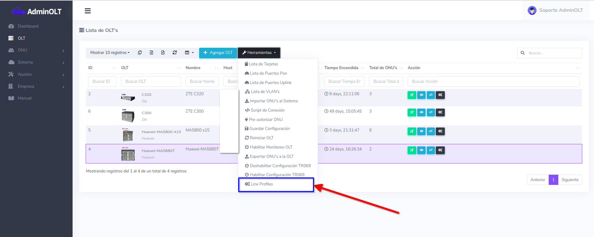 1Dirijase a la lista de OLT's y seleccione (HUAWEI) la que desea configurar.