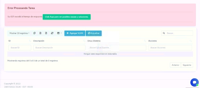 - Su OLT excedió el tiempo de respuesta.