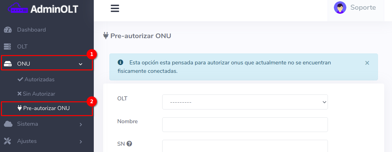 ¿Qué significa Pre-Autorizar Onu en AdminOLT?