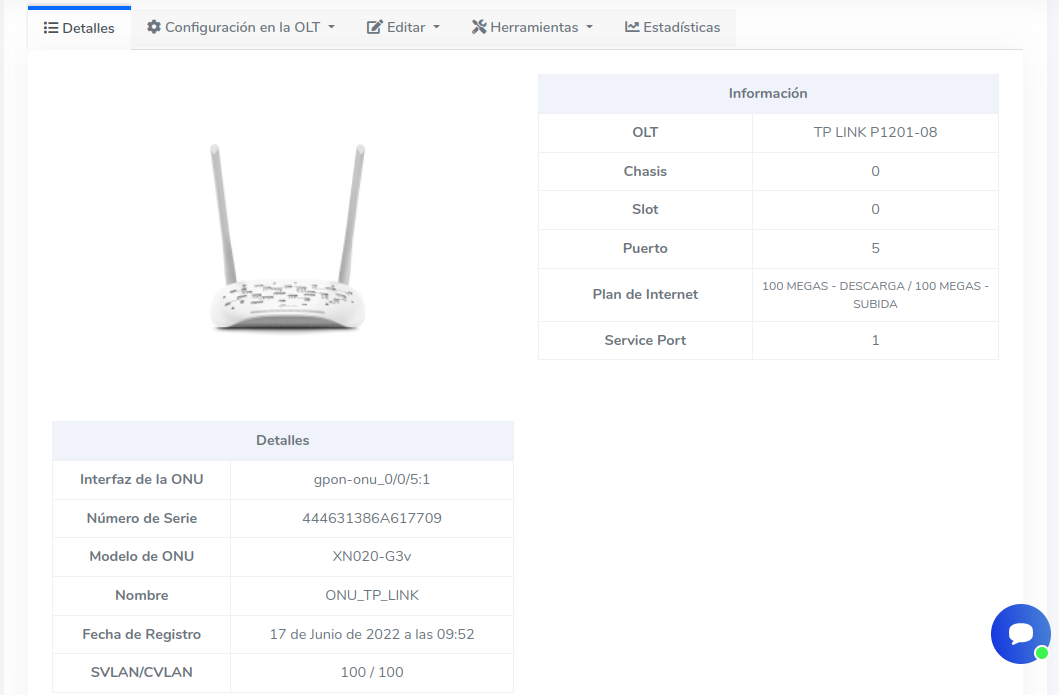 5Si desea verificar los datos de la ONU, consulte los detalles con el siguiente botón.