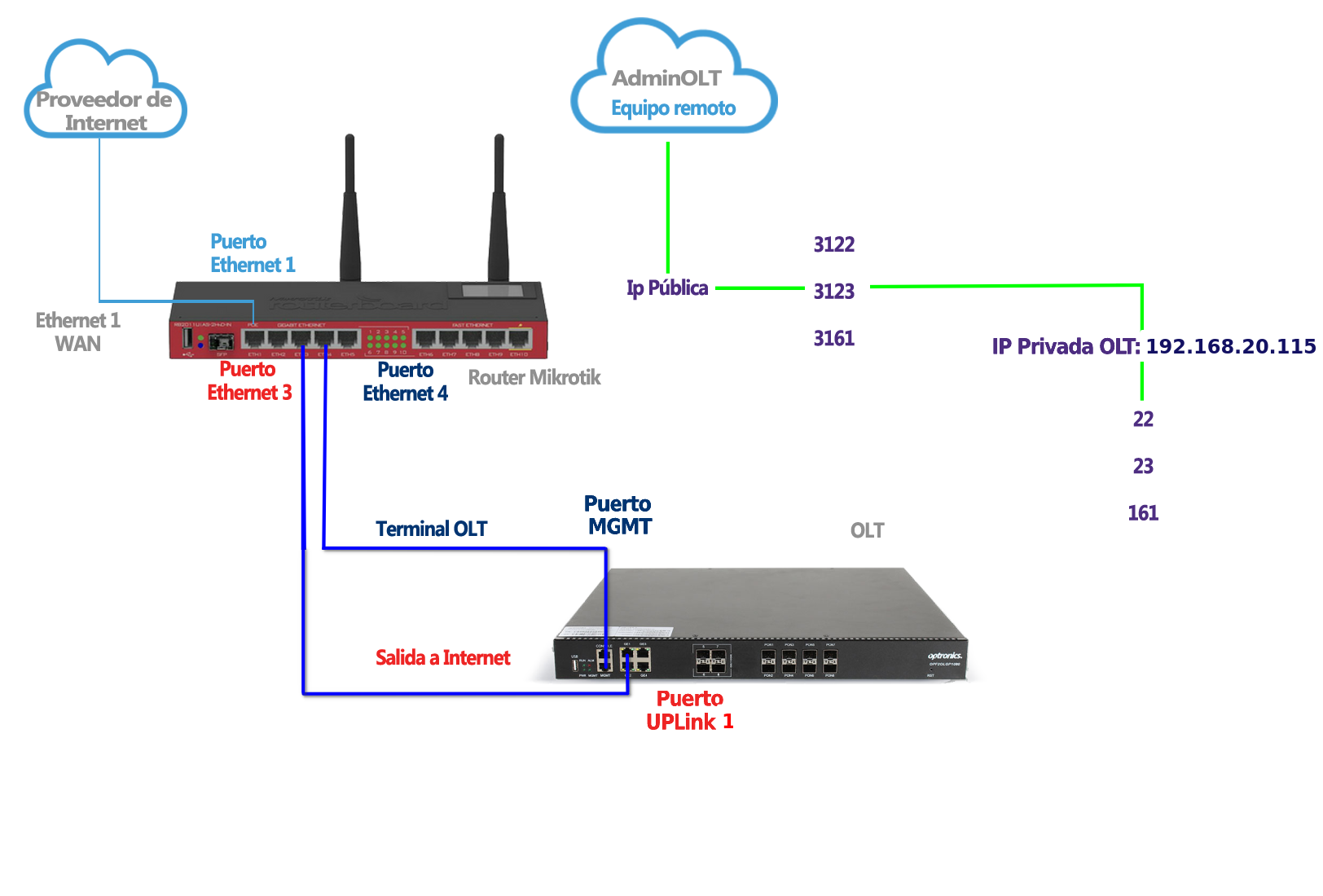 Debe colocar la IP privada que tiene la OLT, para este ejemplo el RB debe ser capaz de enviar ping al OLT.