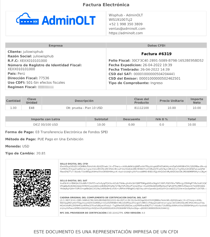 Para que una empresa extranjera pueda generar sus Facturas Fiscales del SAT, es necesario avisar a soporte tecnico([email protected]) para que le activen la opción de timbrar